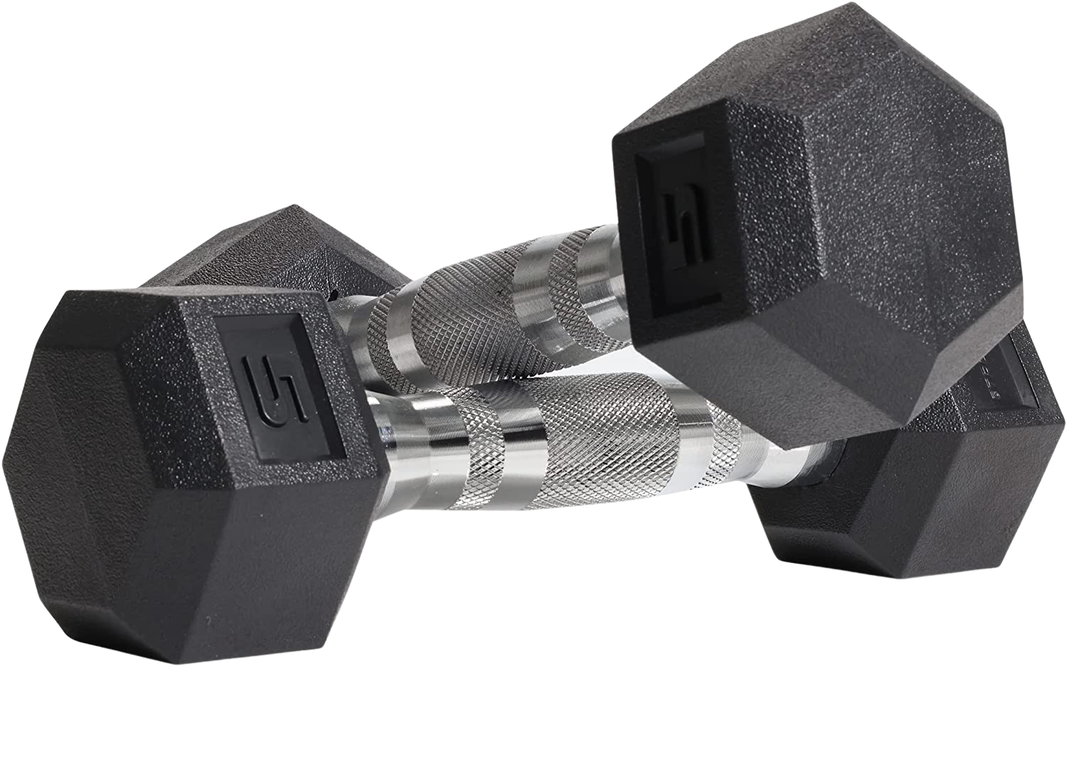 Rubber HEX Free Hand Weights Dumbbell Pairs Sizes 5, 10, 15, 20 and 25 LBS (5 LB Pair, Pair)